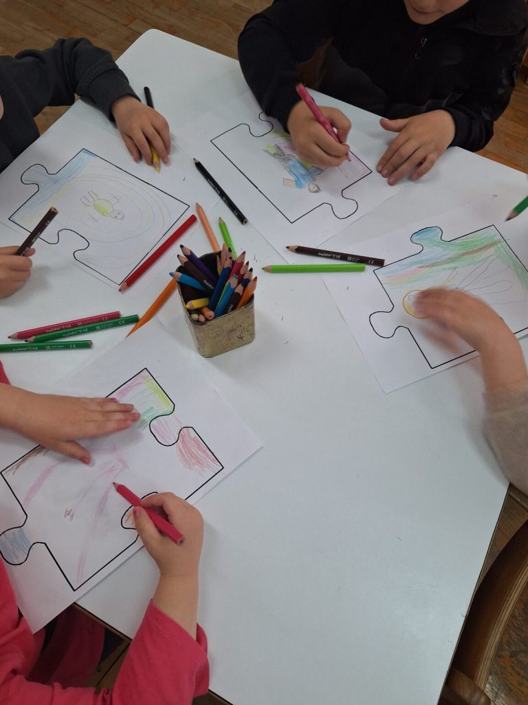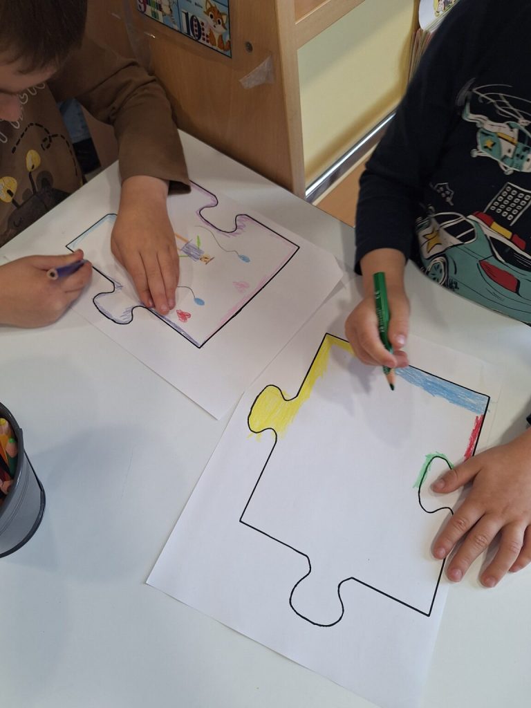 Ostale odgojne skupine obilježile su dan kroz razgovore o važnosti prihvaćanja različitosti, empatije i prijateljstva. Djeca su crtala i bojala puzzle koje su spojene u zajednički plakat, simbol povezanosti i međusobnog razumijevanja.